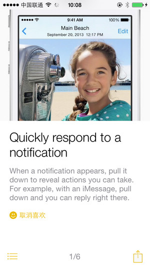 新加入的「提示」是一個簡單的「入門指導」類的幫助 App,它會將一些在 iOS 8 中新出現的操作方法,用動態演示和文字描述的形式豐富地展現出來,方便新用戶學習,但目前文字部分僅支持英文,相信之後會支持中文。