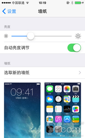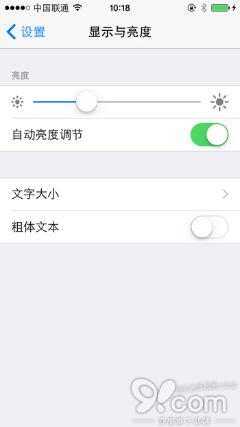 在設置菜單中,首先看到的就是將「顯示與亮度」和「牆紙」區分開了。在「顯示與亮度」中,增加了調節文字的大小,並且開關粗體文字。筆者懷著好奇心點開了「牆紙」,但是發現裡面依然可以調整亮度,似乎這裡還沒有完全優化。