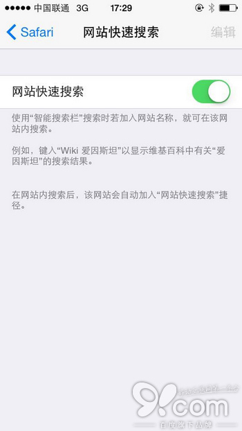 Safari 設置內新增了「網站快速搜索」功能,開啟後,使用「智能搜索欄」搜索時若加入網站名稱,就可在該網站內搜索。這一功能與目前最新桌面版的 Chrome 的快速站內搜索如出一轍,而目前的 iOS 7 版本只能通過 Launch Center Pro 實現類似的快速搜索效果(少數派上周剛做過詳細介紹)。因此,可以預見這一功能將大大提升 iOS 8 中 Safari 的搜索效率。