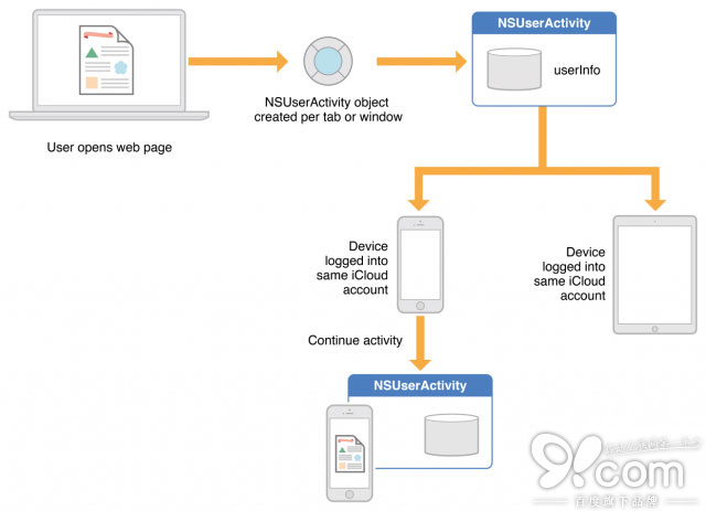 要利用 Handoff ,開發者得先知道如何定義用戶的特定行為。以郵件為例,用戶是在讀郵件還是在寫郵件,這二者是不同的。