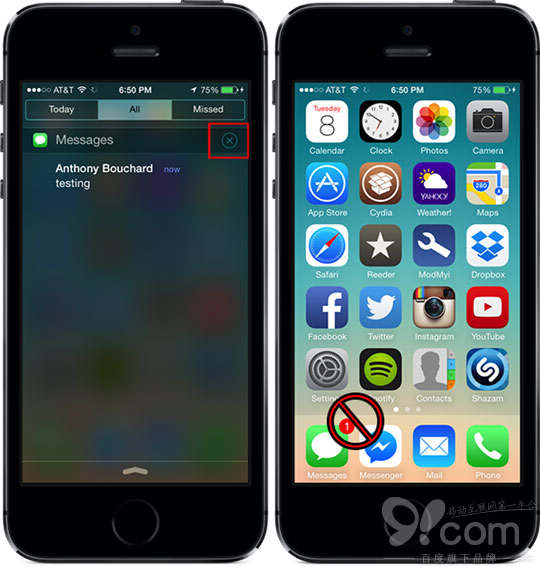 安裝完成後無需設置,立即生效,下圖為安裝MarkAsRead7後實際效果圖。用戶只需將應用在通知中心上所推送的通知列表清除後,在桌面上所對應的應用圖標自動會被同步清理掉。