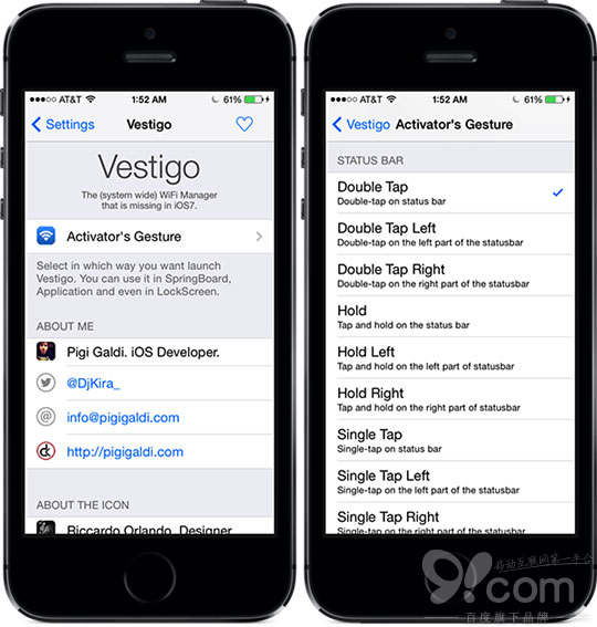 安裝完成後進入設置,你可對【Vestigo】進行設置,然後配置activator激活手勢。如果您在安裝完之後,activator激活失敗,請進入Vestigo設置重啟一次開關。