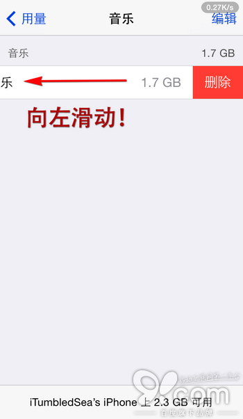 第三步:在歌曲名稱界面向左滑動,然後點擊右側滑入的「刪除」按鈕。