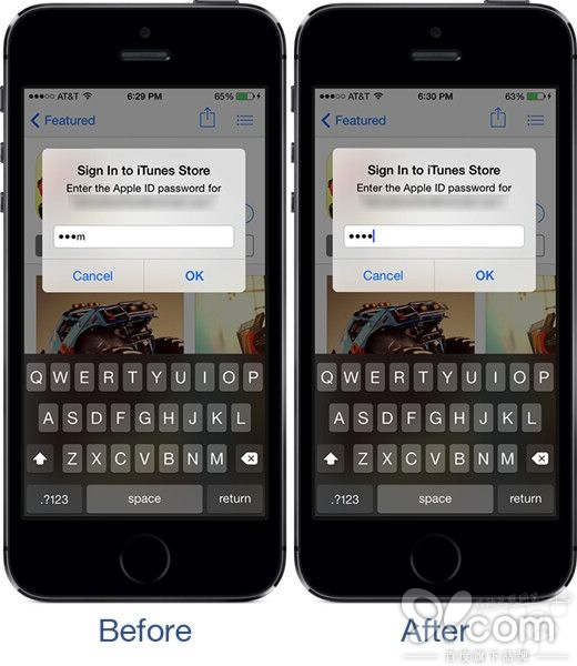 所幸的是,並不是我一個人有這樣的擔憂。如果一個人稍微用心的話,就可以在密碼輸入框裡面完完全全看到你輸入的每一個密碼字符了。 為了解決這個潛在的安全問題,於是越獄插件「Fully Masked Passwords」在Cydia上架了。