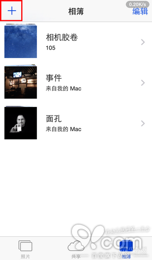 第三步:點擊該頁面左上角的「加號」來創建一個新的相簿。