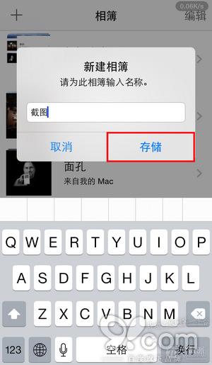 第四步:輸入你喜歡的相簿名稱(本例子中為「截圖」),然後點擊「儲存」按鈕。