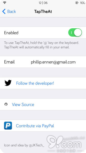 使用 TapTheAt,用戶在輸入郵件地址時,只要長按鍵盤上的 @ 鍵即可自動粘貼郵件地址,省掉了手動輸入一長串地址的麻煩,快捷簡便。有些用戶可能認為使用 iOS 內置的鍵盤快捷鍵也可以了,根本不需要 TapTheAt,但是從技術層面上說,這款新插件可以讓你的輸入變得更快。