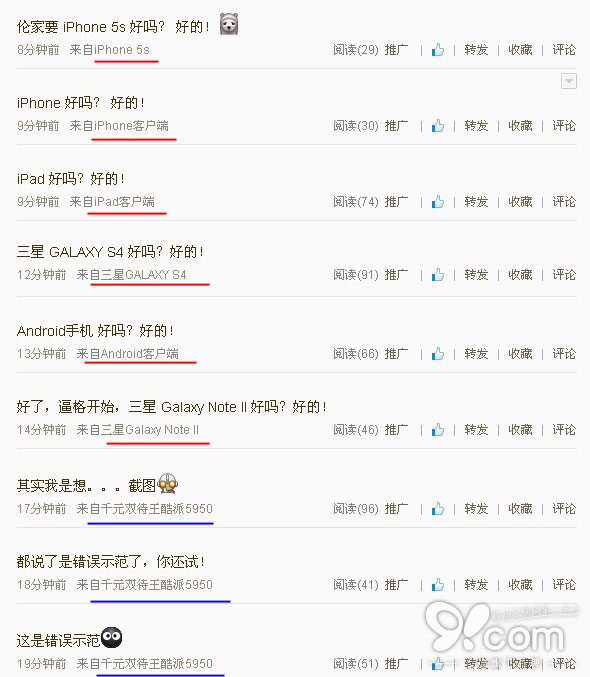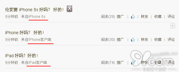 9.打開微博,檢驗被修改的小尾巴。補充——要想逼格高點,用一個iPhone 5s怎麼夠,要每種機型都來一個,好嗎?