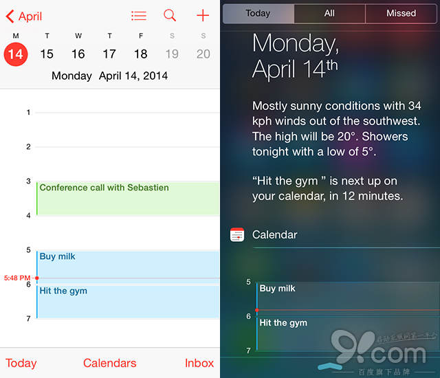 接下來你只需輕輕下拉一下通知中心,便可以隨時知曉此刻的日程進度,真是方便之極。