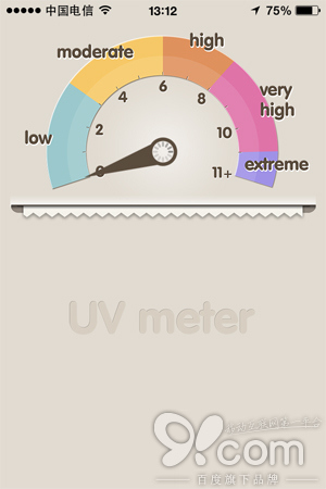 UVmeter 是一款實時查詢當地紫外線指數的小工具,使用起來也非常簡單:打開 UVmeter,選擇允許使用當前位置,然後等待 UVmeter 定位到你的城市,他就會自動檢測出你當前的位置的紫外線指數。UVmeter 將紫外線指數分為 15 個等級,強度越高在 UVmeter 中顯示就越紅,當然如果強度較低則會顯示出「涼爽」的藍色。