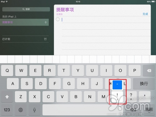 由於iPad鍵盤的引號(“”)則在二級鍵盤上,使用起來不太方便。長按逗號和句號鍵,就可以實現引號的快捷輸入。