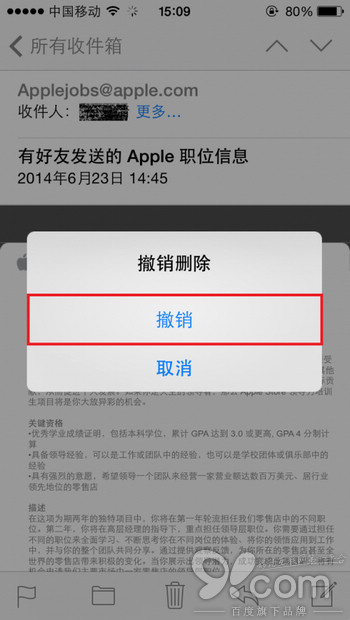 我們都知道,在輸入文字時,搖動iPhone就可以撤銷鍵入。實際上,在郵件界面,搖動機身也有作用,可以撤銷之前的刪除、歸檔等操作,也是很實用的功能。