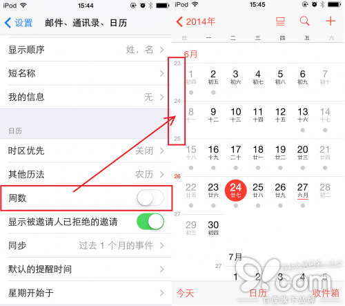 此次升級還帶來了其他設置,打開周數的按鈕,就可以看到在日歷左側出現了周數,是不是很實用呢?