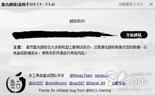 2.支持的固件版本有:iOS 7.1以及iOS7.1.2,該純淨版越獄工具為熱心鋒友所提供,在此感謝該鋒友的無私奉獻。