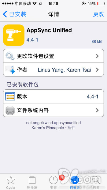 提示:如果搜索不到AppSync Unified,可以進入Cydia—【變更】—點擊左上角【刷新】—再搜索該插件。