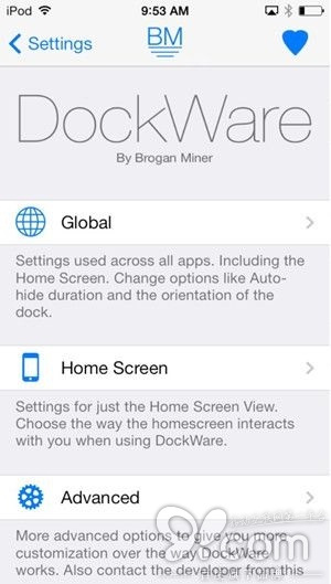 一般情況下,iOS 底部的 Dock 位置,主要是用於放置用最常使用的四個應用,但每一次需要利用這一個快捷鍵的時候都需要返回主屏幕,整件事情就變得不甚「快捷」了。如果你是一個已經越獄了的用戶,這一個小插件就可以讓你對 Dock 的運用有更上一層樓的體驗!讓你在任何地方都可以自由地召喚出 Dock 欄位,無需返回到主屏幕!不過DockWare 必須依賴 Activator 手勢插件的支持。