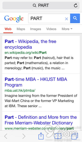 即在你的Safari裡面通過默認搜索引擎呈現結果。