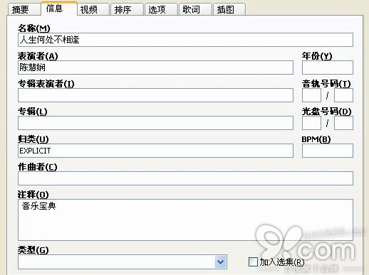 第二步,在“顯示簡介”頁面,點擊進入“信息”選項,在該頁面“歸類”中,輸入“EXPLICIT”,完成後點擊“確定”。