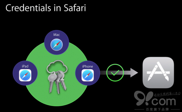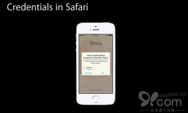 iOS 8系統裡,原生的iOS應用可以直接訪問Safari浏覽器所存儲的用戶名、密碼,用戶只需選擇合適的賬戶,輕點即可登陸應用。