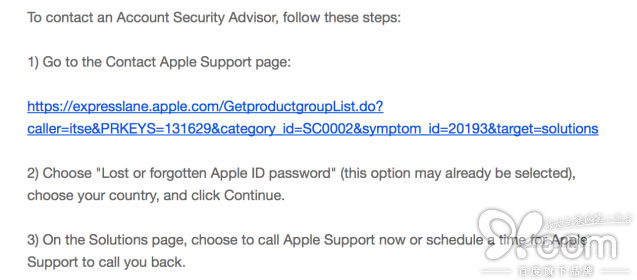 根據客服 Kent 的郵件,他提供了兩種解決的辦法:一種是到蘋果官網的 Expresslane 找到「忘記或遺失密碼」選項,第二種是直接打電話過去。經過一番折騰,我們只能選擇第二種——因為第一種方法需要先填寫信息,然後被動等候預工作人員打電話給你,而由於時差問題,以及你是國外號碼,對方根本無法與你取得聯系。