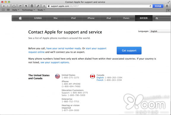 第二步就是要確定你 Apple ID 的地區,以此來確認需要撥打哪個號碼,具體可以參照這個網址 點擊這裡。然後選定好號碼後,就可以打過去了。筆者撥打的是美國的電話,選擇的是英語,因此筆者的撥打的號碼是 101930018002752273(10193 是聯通用戶專屬,打國際長途在某些地區會便宜些) ,注意每個號碼的第一位數是所處國家的區號,前面需要加 0 (兩位數區號)或 00 (三位數區號)。