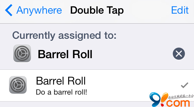 安裝 BarrelRoll 後,轉到偏好設置指定 Activator 手勢來激活 BarrelRoll 生效。在這裡我選擇了一個雙擊狀態欄來進行 360 度翻轉的觸發手勢。