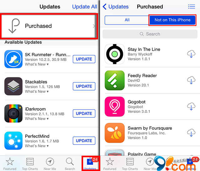 另外的一篇《小竅門:快速查看iPhone/iPad上所有已安裝的應用》一文給出了快速查看已安裝的應用列表的方法,但是如果你想快速看到自己的“未安裝”列表,就沒有那麼“快速”了,實際上它植入了“ App Store ”應用程序。如果你需要的話,在那裡你可以免費下載所有先前購買的應用程序。