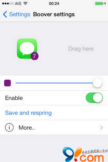 打開「position and size」,下方兩個選擇分別是角標大小,角標形狀(由方形到圓形慢慢過渡)。同樣記得「Save and Respring」。