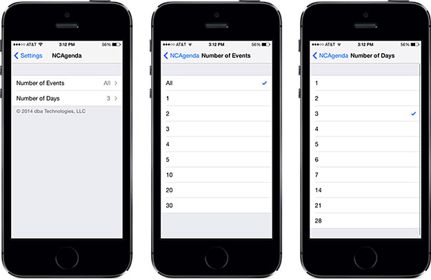安裝完成後,依次進入【設置】→【NCAgenda】進行選項設定。在這裡你可以設置需要展示的通知事件數量及顯示通知的天數。