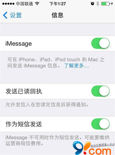 第一種方法是, 在停用 iPhone 以前, 先在"設置"裡禁用 iMessage. 這樣就告訴 iCloud 你不想再接收 iMessage 消息了. 於是, 別人發來的信息就會按照短信處理. 你可以放心使用 Android, Windows Phone 或者黑莓系統的手機.