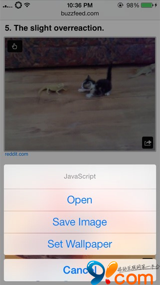 當你使用Safari浏覽器浏覽Gif動圖時,你也可通過長按圖片,點擊“Set Wallpaper”即可將該Gif動圖設置成為壁紙。