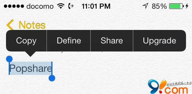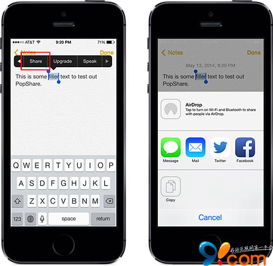 PopShare可以在文本編輯菜單添加一個分享功能的小按鈕,你只需要輕點便可把任意文本通過iOS7系統自帶分享功能分享出去。還算是一款蠻實用的小插件。