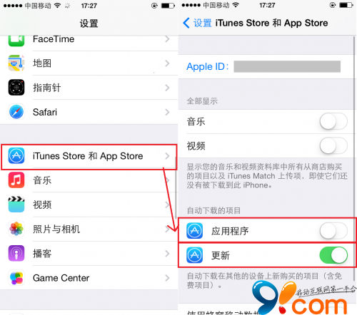 4. 在“設置”-“iTunes Store和App Store”中,關閉App的自動下載、自動更新功能;