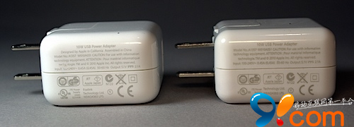 左邊為正版充電器,右邊為盜版