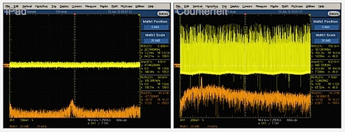 除了安全性能和輸出功率低之外,盜版iPad充電器在輸出的時候還會產生大量的峰值電流(如下圖),這會縮短iPad使用壽命。