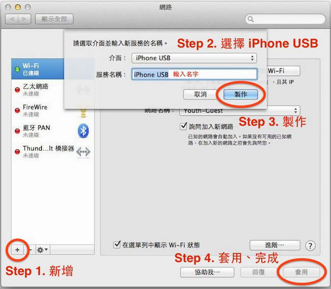 USB 傳輸線分享給網絡 Mac