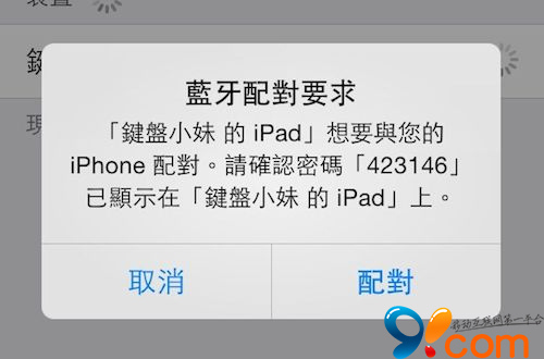 兩台設備都會出現這個彈窗,確認密碼相同就可進行配對