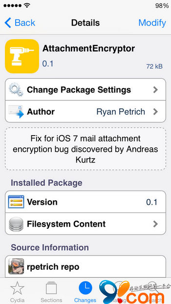 該插件名為 AttachmentEncryptor,首先你需要添加 Petrich 的源 http://rpetri.ch/repo/。安裝完成後需要重啟桌面來使插件生效。至此,iOS 7 上的郵件附件加密 bug 就得到了修復。