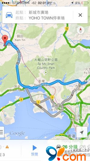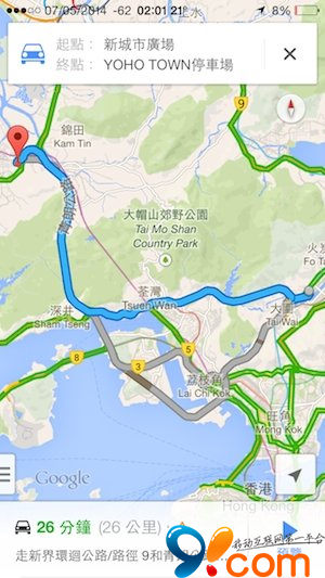 以往,行車路線導航功能選定的路線未必是我們最想用,有時我們想比較一下,現在我們只要在啟動正式路線導航前,以「滑動」方式點選路徑區域即可實現改變路線,地圖會立即顯示路線走法。