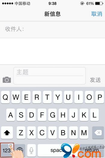 第二步,按住“123”鍵後,繼續滑動手指至需要輸入的標點符號處松開,即可快速輸入該標點符號,並且鍵盤會自動回到了字母鍵盤。