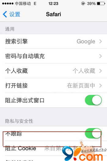 iOS7系統新增了一個關於隱私和安全性的功能,即在Safari浏覽器中的“不跟蹤”功能,這可以讓iPhone用戶上網更安全。操作方法: