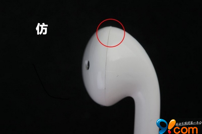 Apple早在多年前就采用了一體成型工藝,加上精良的做工,整個耳機表面是絕對沒有粗糙、甚至對不攏的縫隙的。仔細檢查以下這些邊緣連接處,如果有這樣的縫隙,就說明你可能買到了仿品噢~
