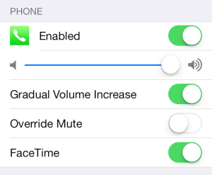 選擇打開來電的選項,你就可以對音量級別進行選擇,你同樣可以開啟鈴聲音量逐漸增大的模式,可選擇是否覆蓋靜音開關,或者是打開或關閉 FaceTime 的來電。