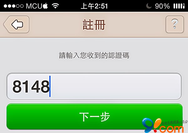 2.LINE 會發一封短信給你,然後把收到的 4 位數密碼輸入後點“下一步”進行驗證。如果等太久沒收到的話,可以點下面的“重傳認證碼”。