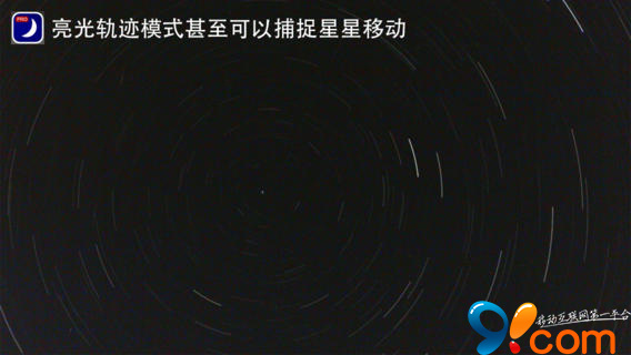 • 光亮軌跡模式(Light Trail Mode): 用於光繪及天文非常棒: 可利用無限曝光時間拍攝星跡!見截圖示例。