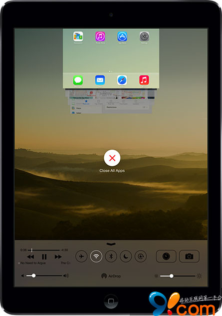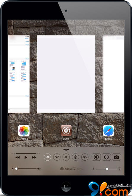 與iPhone版本類似,Auxo 2在iPad 上依舊延續了控制中心的設計思路,記成控制中心與應用切換,讓你快速在多媒體控制與應用間隨心選擇,稍有不同之處便是iPad版本的Auxo 也保留了ios 7控制中心的原生布局與部分設置,例如音量/亮度控制,AirDrop分享功能等。