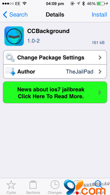 提示:如果搜索不到CCBackground,可以進入Cydia—【變更】—點擊左上角【刷新】—再搜索該插件。