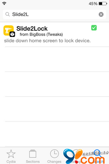 提示:如果搜索不到Slide2Lock,可以進入Cydia—【變更】—點擊左上角【刷新】—再搜索該插件。