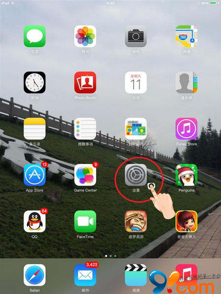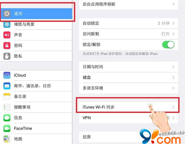 第三步,接下來打開iPad,找到“設置”項,之後點擊“通用”,在右邊的選項中找到“iTunes Wi-Fi同步”項:
