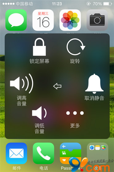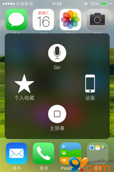 回到屏幕主界面,點擊虛擬按鍵圓點,就看到Siri、設備、主屏幕等相關的虛擬按鍵,點擊需要使用的按鍵,即可使用了。